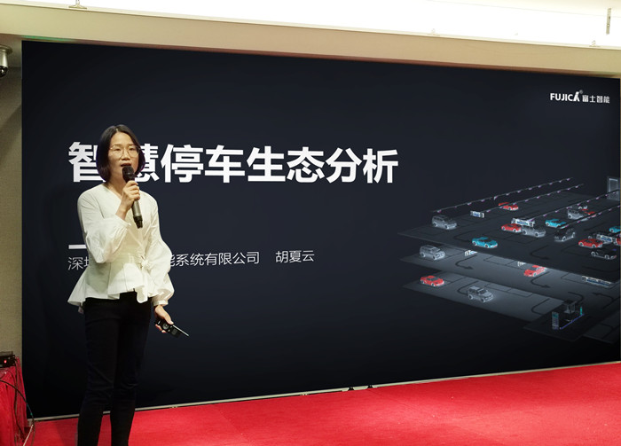 作為出入口智能管理和智慧城市生態環境建設的開創者和引領者,富士智能受邀出席本次活動,高級產品總監胡夏云發表了《智慧停車生態市場分析》的主題演講。