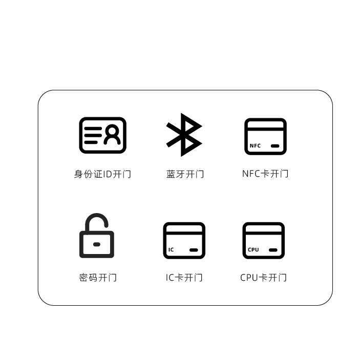 產(chǎn)品適用于社區(qū)、商業(yè)寫字樓、工業(yè)園區(qū)、學(xué)校、醫(yī)院、政府機(jī)關(guān)單位等多場景,支持IC卡、CPU卡、NFC卡、身份證ID號(hào)、藍(lán)牙、密碼等開門方式。