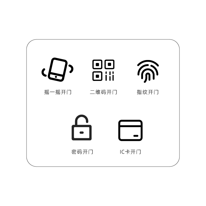 多種開門方式,指紋、掃二維碼、刷IC卡、手機搖一搖及密碼