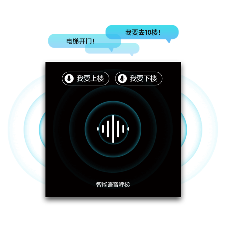 語音呼梯,點亮上下樓和目的樓層,解決傳統電梯與身體接觸問題,乘梯更便捷。