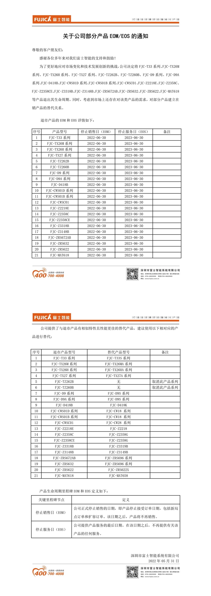 關(guān)于公司部分產(chǎn)品EOM/EOS的通知